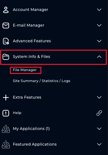 1. Within the menu, go to 'System Info & Files' and then to 'File Manager'.
