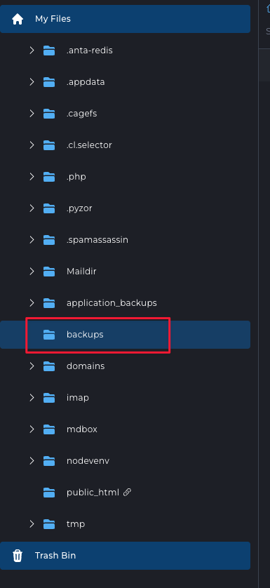 2. Navigate to the backups folder.