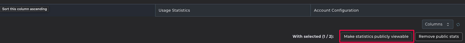 - Check off your domain and click on 'Make statistics publicly viewable'.
